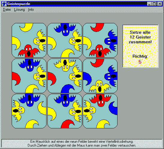 Man kann jeden der 9 Spielsteine mit der Maus an eine andere Position